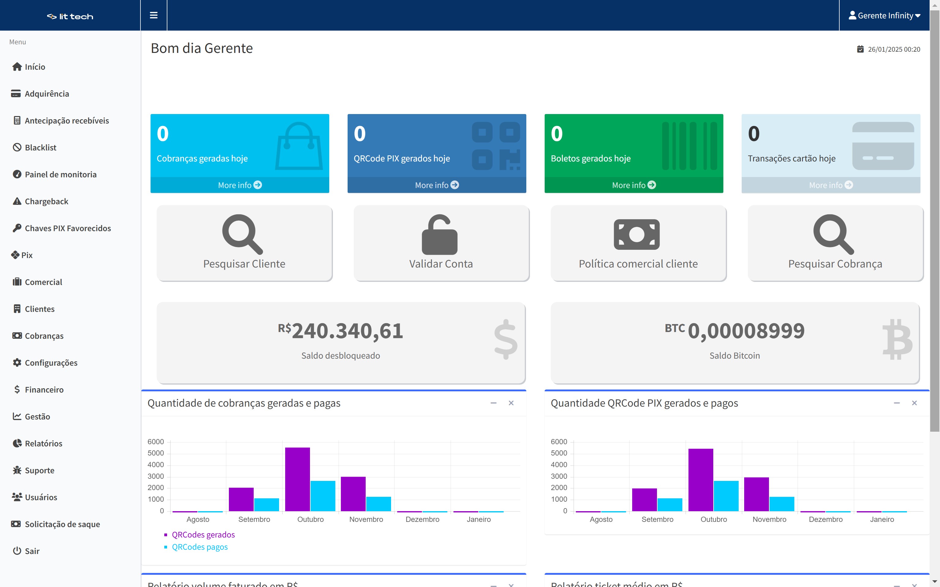 Obtenha controle total sobre seus pagamentos com um painel intuitivo. Acompanhe transações, fluxo de caixa e relatórios detalhados em tempo real, ajudando sua empresa a tomar decisões estratégicas com base em dados precisos.